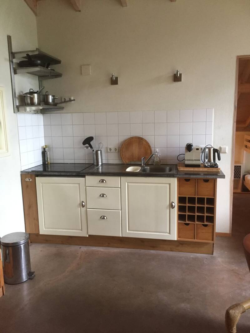 Keuken, met koelkast en elektrische kookplaat. Tevens een magnetron en oven aanwezig. Er is geen afwasmachine.