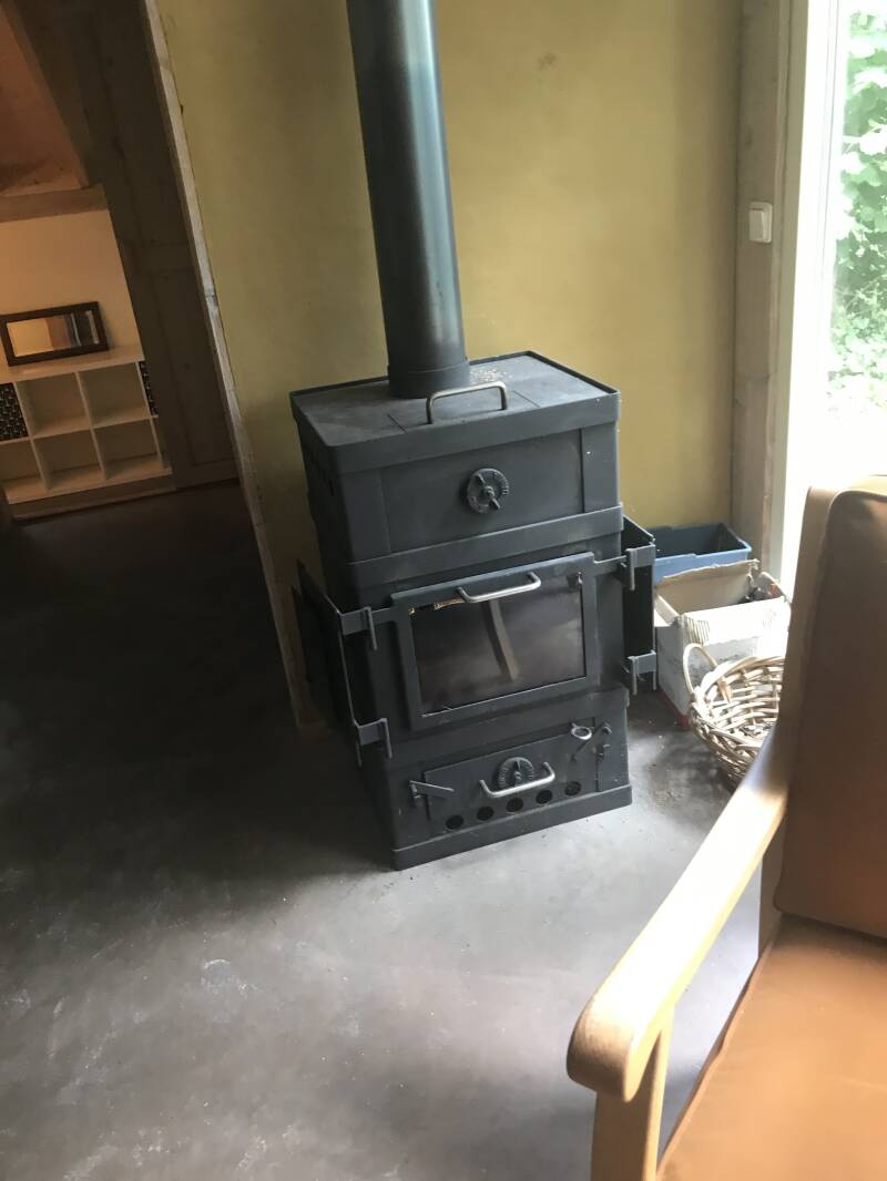 Wanneer het fris is kan de houtkachel aan. Hout is in voldoende mate aanwezig.